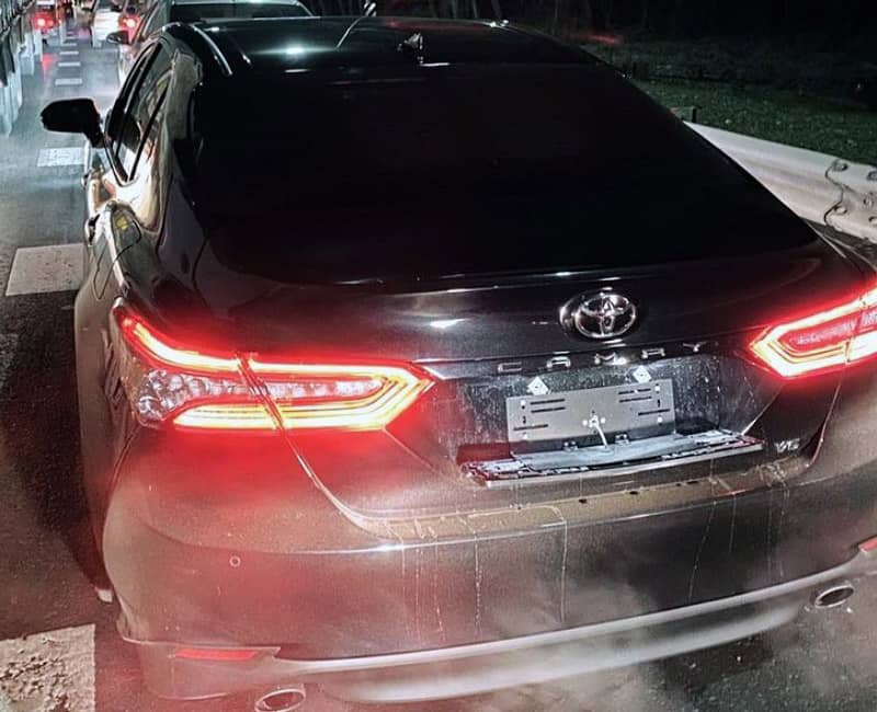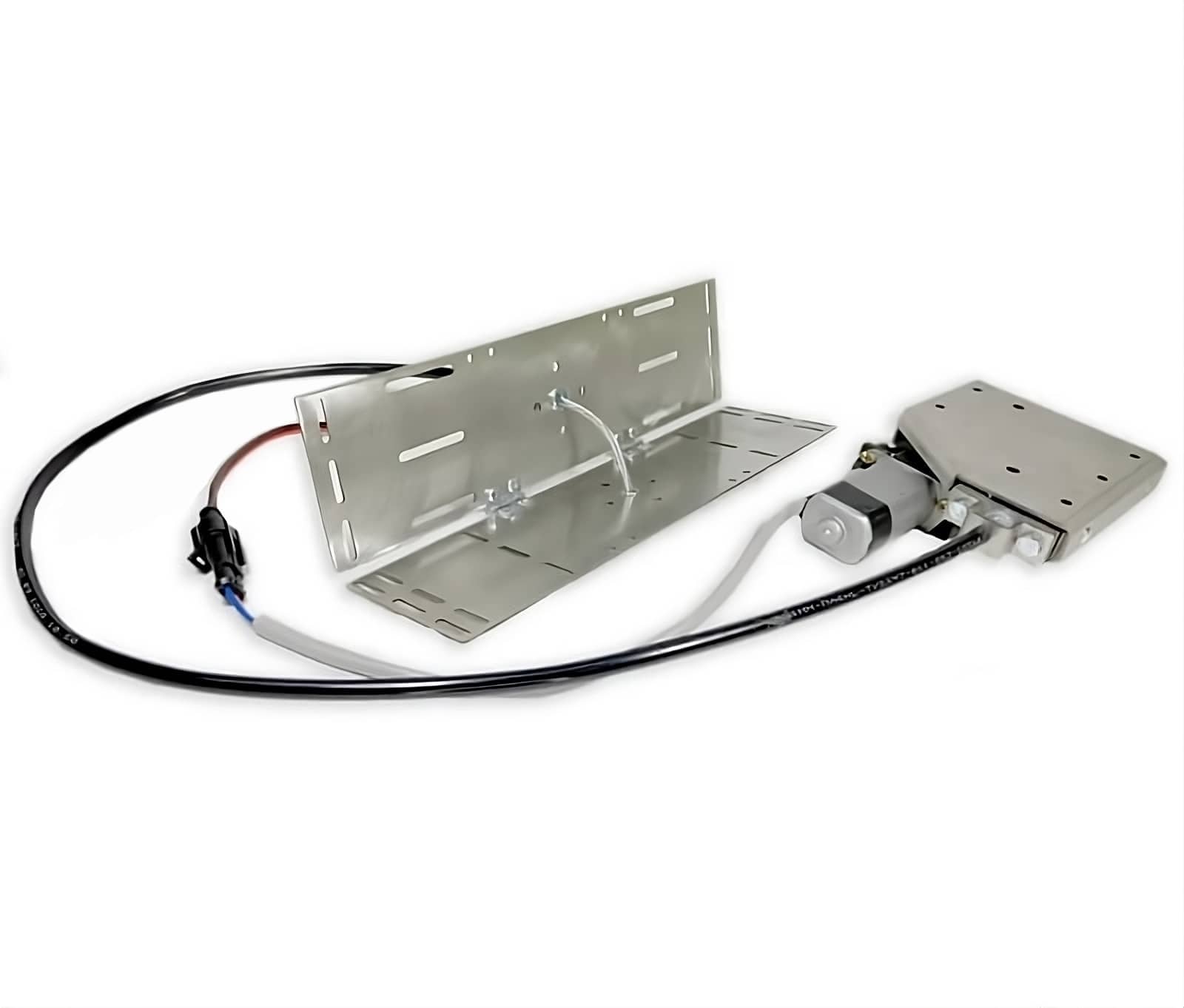С помощью пульта дистанционного управления или кнопки в салоне откидная рамка с номером мгновенно откидывается на 90 градусов вниз.